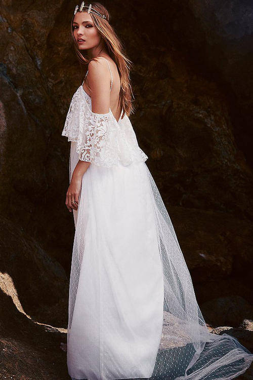 GORGEOUS WHITE LACE & DOTTED MESH DETAIL MAXI DRESS