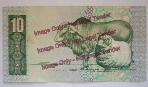 GPC de Kock 3rd Issue Ten Rand Note MISPRINT - 2 different serial numbers AF1969435c and AF1909435c. As may be seen the first serial number appears incorrectly in the upper left and no serial number appears in the lower left as per the norm. Condition F as per photos below