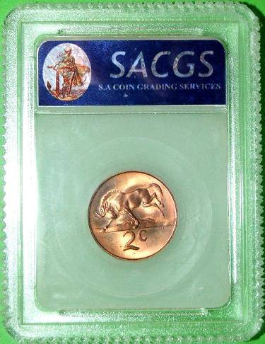 SACGS Graded Coin: 1967A South Africa 2 Cent (MS-64)