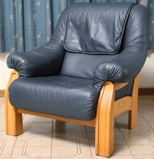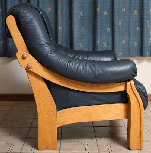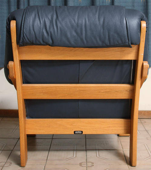 Beautiful solid oak base, upholstered with navy blue Hannistar export quality leather.