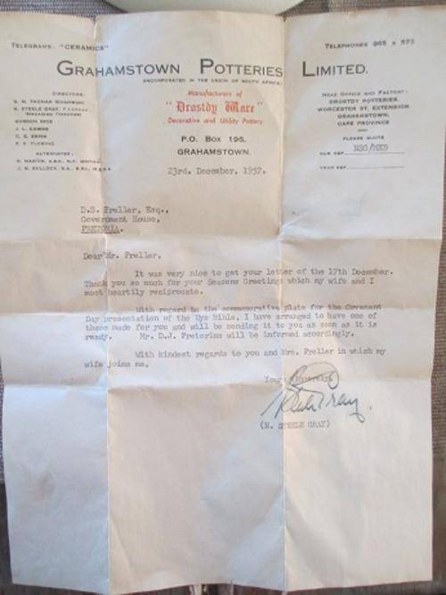 Grahamstown Potteries - Drosdy Ware - Covenant Day Commemorative plate