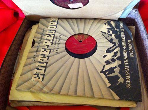 20 Beautiful Gramophone records in a rustic well used suitcase. VERY nice display piece or play it on your Gram! I included a few photos of some of the records inside. Feel free to ask questions.