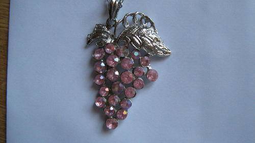 1 nickel and pink rhinestone grape pendant length is 55mm