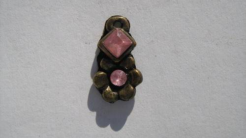 1 antique bronze and pink rhinestone metal flower charm/pendant length is 15mm