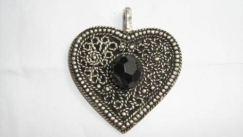 1 x 55mm diamaeter x 55mm length antique metal nickel and black heart pendant