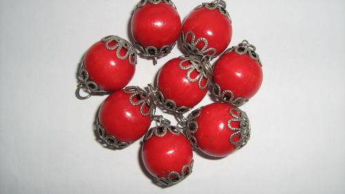 24 x 15mm red large wooden round beads with filigree large beadcaps at either end - ready to use