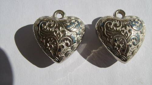 2 rhodium puffed heart pendants (diameter is 20mm and length is 25mm)