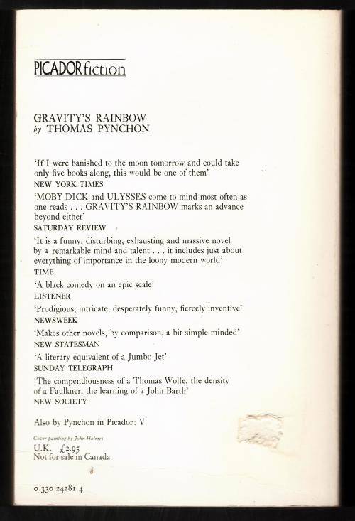 Winner of the 1973 National Book Award, "Gravity's Rainbow" is a postmodern epic, a work as exhaustively significant to the second half of the 20th century as Joyce's "Ulysses" was to the first. Its sprawling, encyclopedic narrative and penetrating analysis of the impact of technology on society make it an intellectual tour de force.