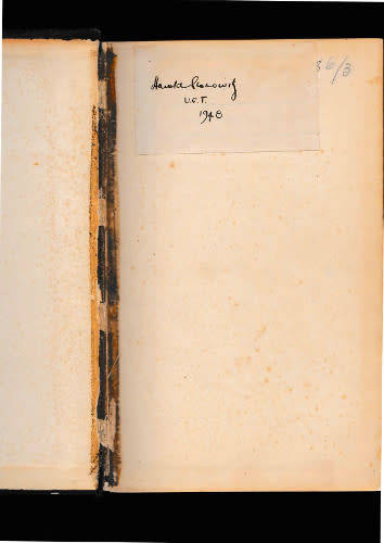 The outer cover is in fair condition, the fabric has split on the spine seam at the back of the book and there is tape across the top spine edge. Note: The cover needs a bit more TLC. Back cover has been taped to the end paper to prevent the book from detaching from the spine and the front inner cover might need the same TLC as it also appears to be spliting.