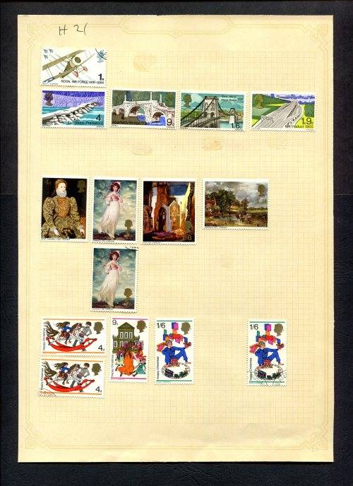 Great Britain - 15 Stamps Mounted (Hinged) On Old Album Page