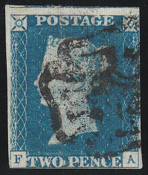 Great Britain 1840 QV 2d Blue a used copy with two large margins and two narrow/very narrow margins perhaps just touching design in places.