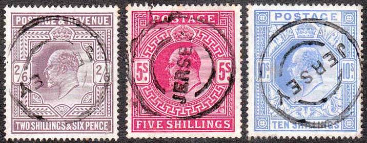 Great Britain 1902-10 KEVII issue 2/6d, 5/- and 10/- shades fine used. Some tone spots, 10/- lightly creased and condition as per scans. Good appearance.