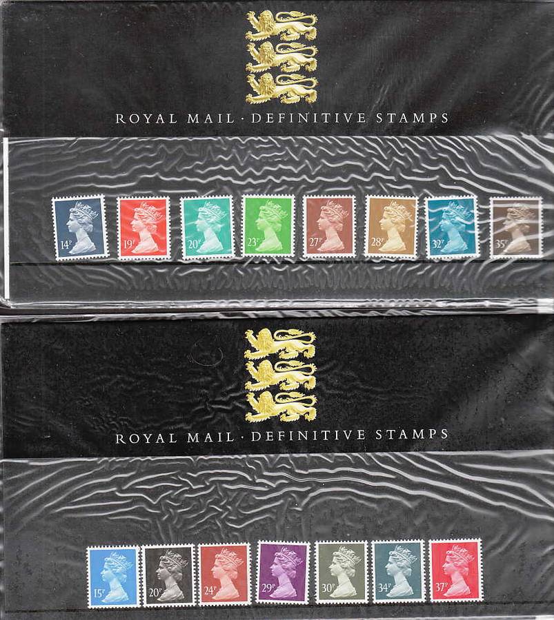 Great Britain 1984-88 Machins presentation packs no 5 (1984), no 14 (1987), no 15 (1988) and no 19 (1988) very fine. The wrinkles is from the plastic and not affection the MNH stamps. Condition as per scan(s) which form part of the description.