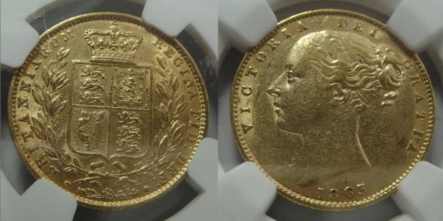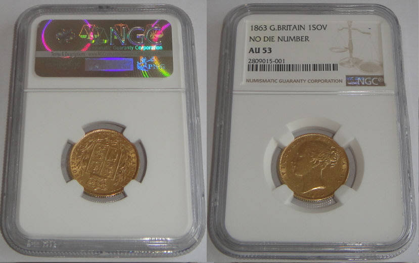 Great Britain: GOLD Sovereign of 1863: NGC graded AU 53