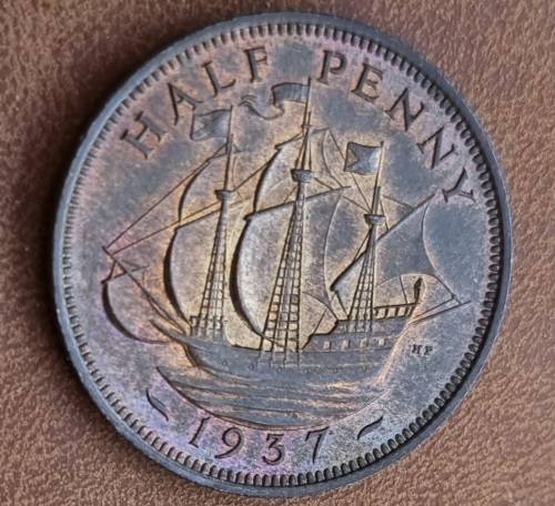 Great Britain: Half Penny 1937 | ##**BEAUTIFUL TONING!!!**##