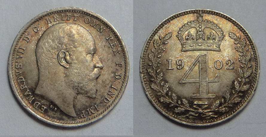 Great Britain, King Edward VII, Silver 4 Pence of 1902 (UNC)
