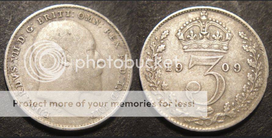 Great Britain : King Edward VII : Silver Three Pence (3d) of 1909