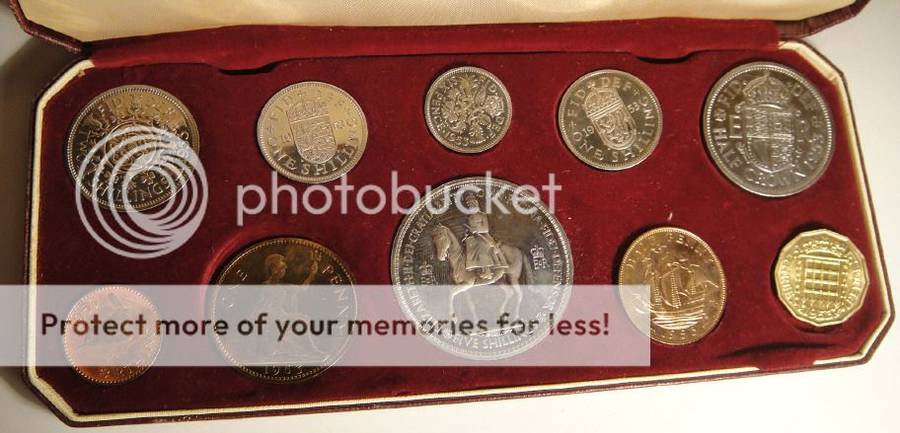 This set catalogues at US$175 (Krause PS25) and consists of the Coronation Crown, Half-Crown, Florin, English Shilling, Scottish Shilling, Sixpence, Three-pence, Penny, Half Penny and Farthing.