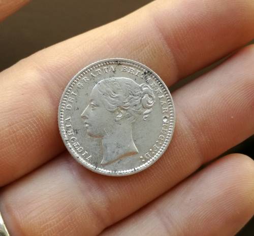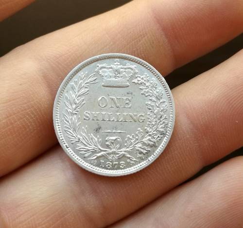 Great Britain Queen Victoria 1873 (error on die no?) Sterling silver Shilling.