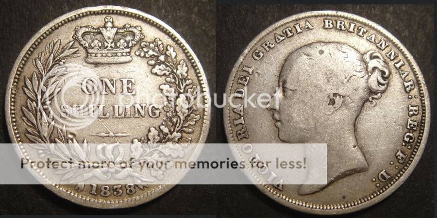 Great Britain : Queen Victoria : Silver Shilling (1/-) of 1838
