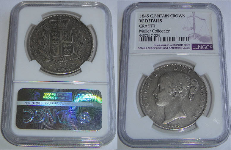 Great Britain: Silver Crown (5-Shillings) of Queen Victoria of 1845: NGC graded VF details