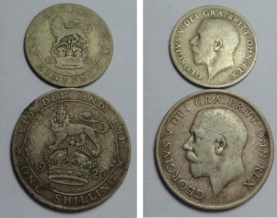 Great Britain, Silver Sixpence (1921) & Shilling (1920)