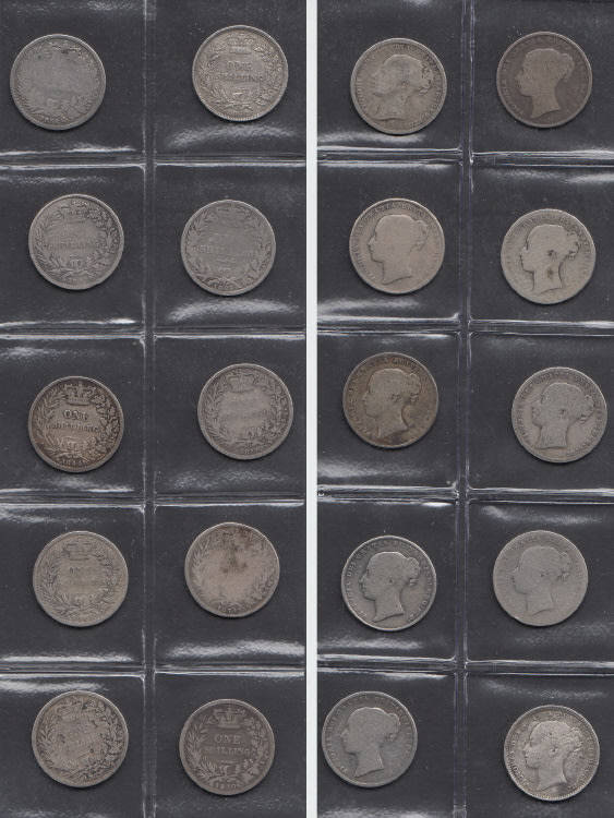Great Britain: Ten SILVER Shillings of the Young Head Queen Victoria