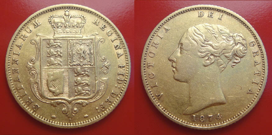 Great Britain: Victorian GOLD HALF SOVEREIGN of 1874