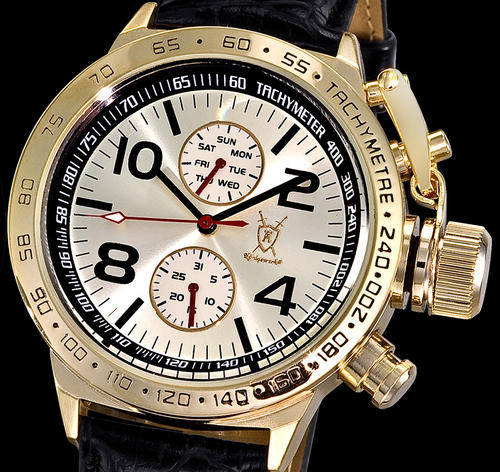 A "Licinius Leather Metallic Gold" konigswerk clock
