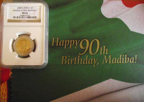 GREAT MS 66 NGC GRADED COIN AND HARD COVER 90TH BIRTHDAY STAMP COMBO