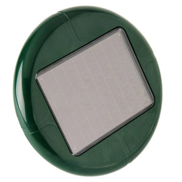 The Sentinel Repeller works with a solar charged battery. The solar module charges the battery during the day, and runs the unit, while night-time operation is enabled by the battery. Choose the best sun situation enabling the solar panel to receive the light directly.