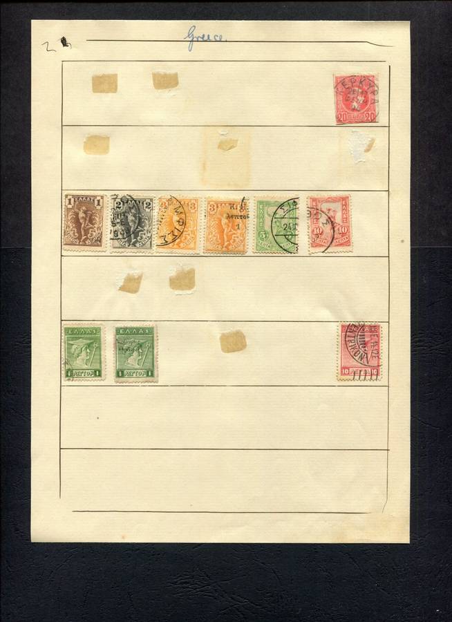 Greece - 10 Stamps Mounted (Hinged) on Old Album Page