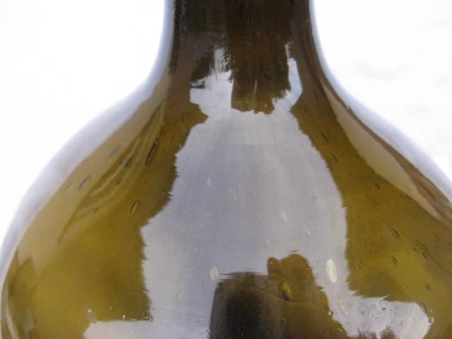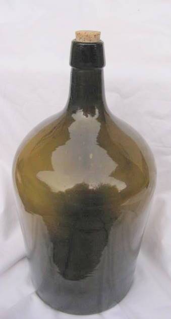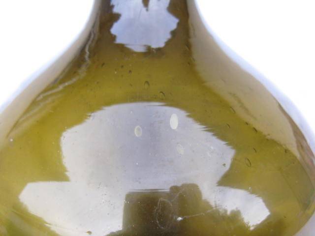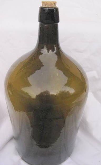GREEN BOTTLE : HALF DEMIJOHN : 35cm HIGH : BASE DIAMETER 16cm