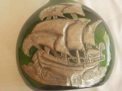 GREEN BOTTLE WITH PEWTER OVERLAY