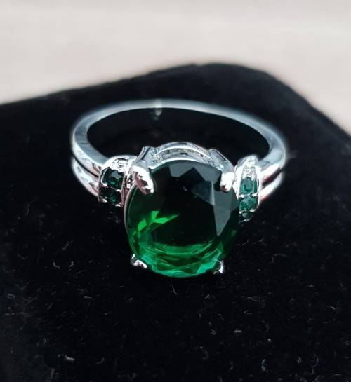 Green Crystal Emerald Wedding Ring White Rhodium Plated Jewelry