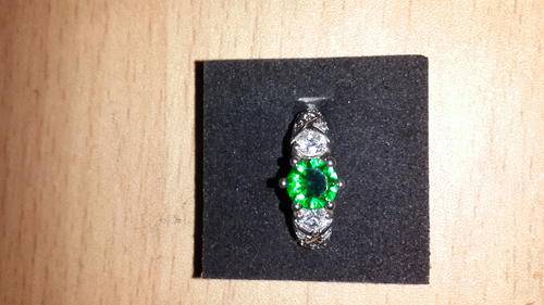 GREEN EMERALD CUBIC ZIRCONIA AND SIMULATED DIAMONDS SEIT IN 18K ROLLED WHITE GOLD