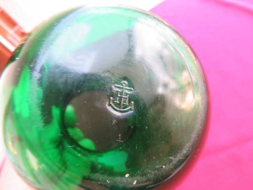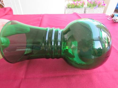 Green glass vase in as new condition.Height 17 cm.Very pretty!! Anchor marking