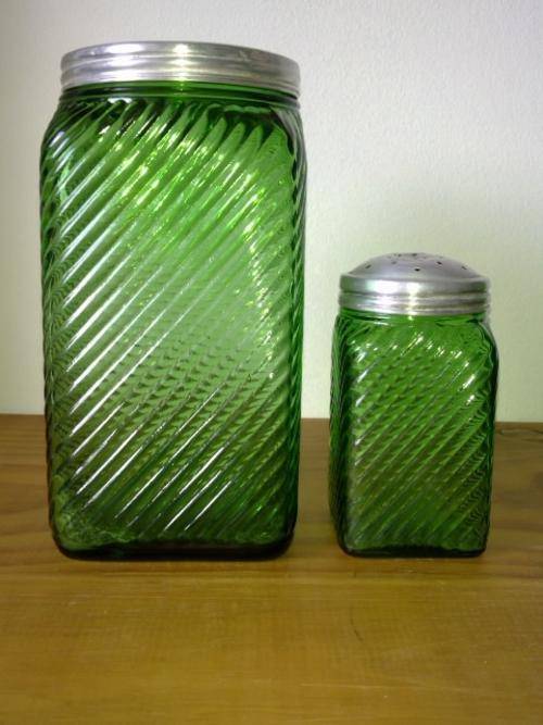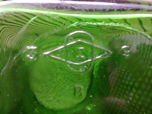 Glass: The mark is visible on all except for one of the small shakers. The condition of the glass is very good, there are no scratches or chips, the bottoms being a little 'scuffed' from use over the years.