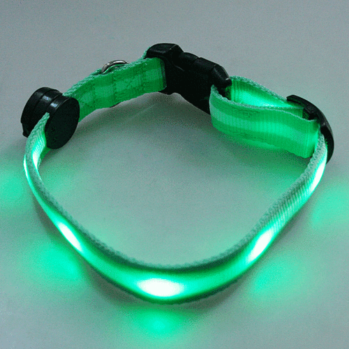 The collar has a battery operated control box (batteries included) to set the lights On/Flashing or Off!