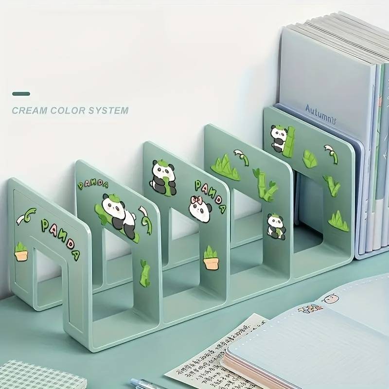 Green Plastic Bookshelf with DIY Panda Design - Versatile Desk Organizer and Reading Shelf, Customizable for Your Favorite Spot