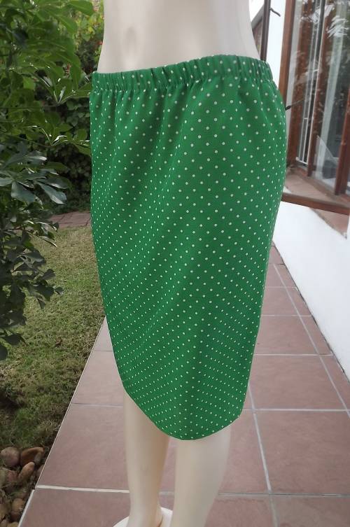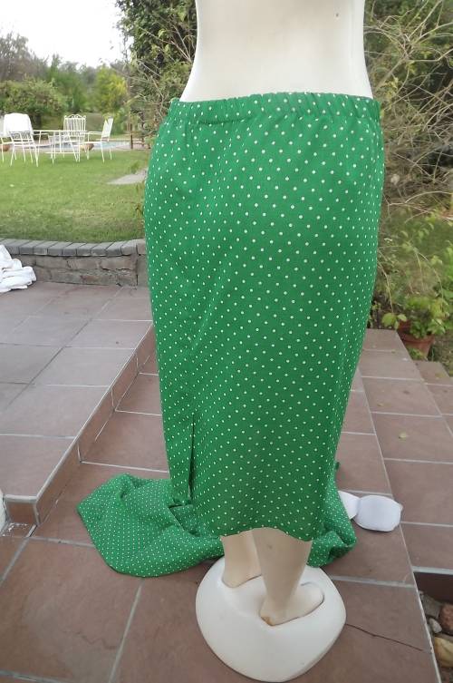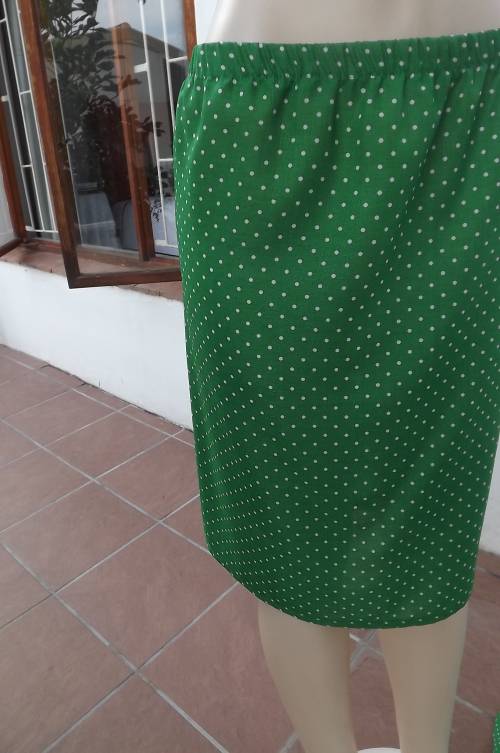 Green polka dot piece skirt suit in polyester/rayon fabric.Size 36/12.Skirt with elasticated middle.
