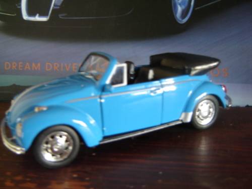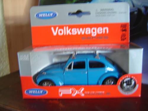VW Beetle w S/board D/Cast Model WELLY 1/36 New D/Box. Approx. 11.4 Cm long.