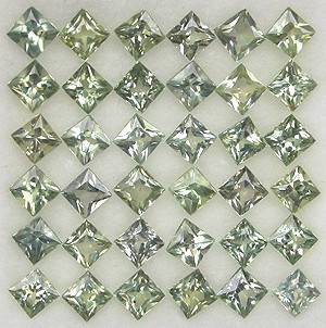 GREEN SAPPHIRE 2.7mm princess square facets (Africa) - 37 pieces available