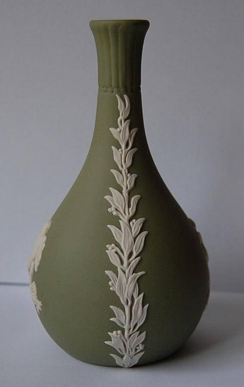 Very collectable Green Wedgwood Jasperware bottle neck vase
