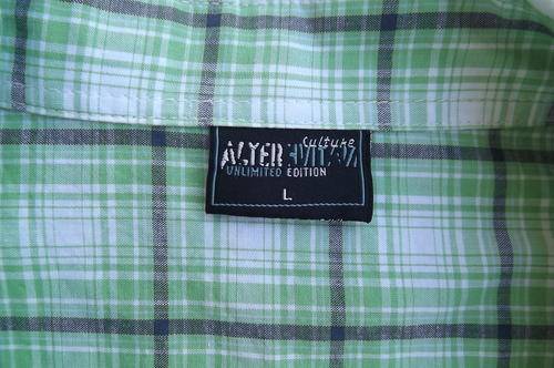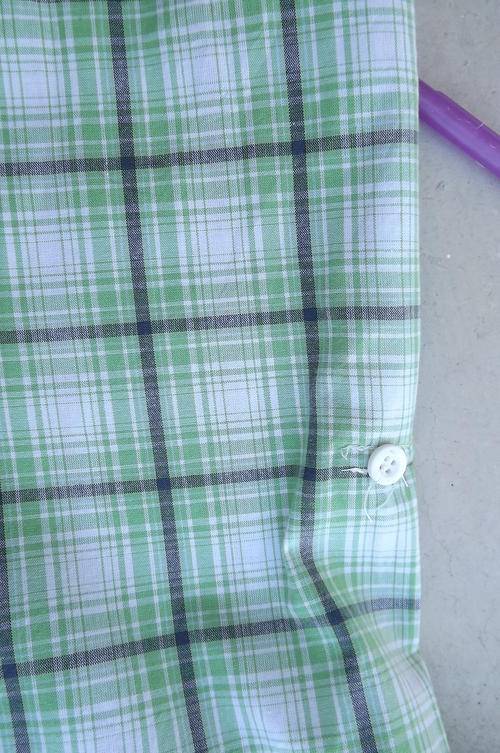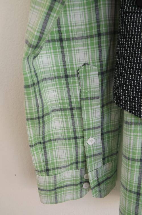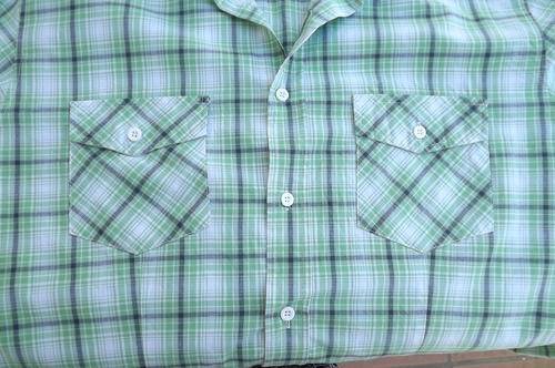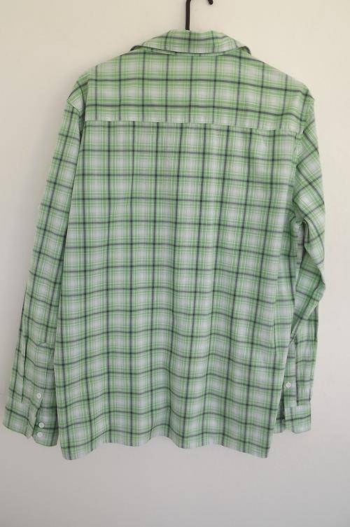 Green&white checked 100% cotton large shirt.2Pockets on front.Sleeves have pull-up option.New condit