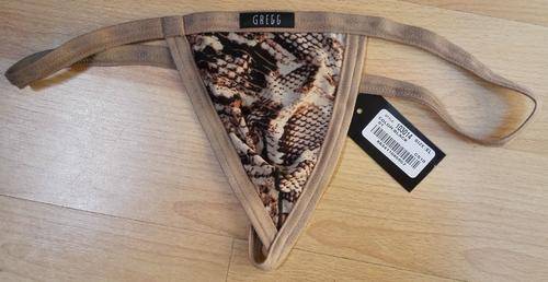 Made from a silky stretch fabric, the Snakeskin G-String by Gregg Homme features a strikingly attractive snakeskin print, a contoured, center seamed pouch, and a sexy low rise. A ¼ inch wide waistband made of faux-suede features the signature Gregg Homme patch logo at front center.