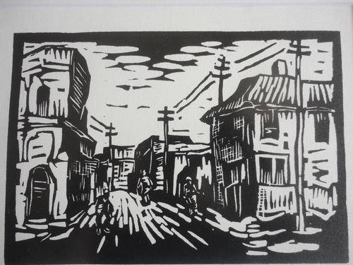 Condition of frame and Linocut is Perfect  ( Ready to Hang)