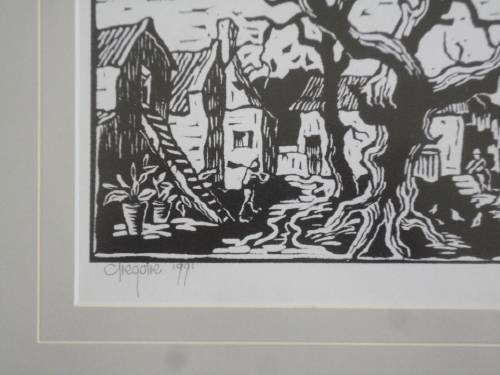 Condition of frame and Linocut is Perfect  ( Ready to Hang)