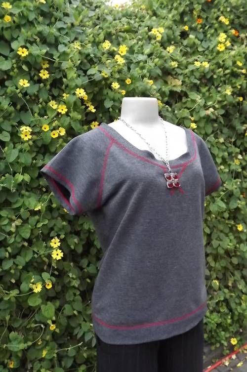 Grey casual top with short raglan sleeves.Size 36/12.Wide scooped neckline. As new