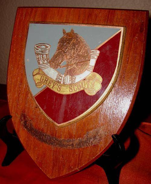 Greys Scouts Plague on wooden mount-Dia 18cm x 15cm